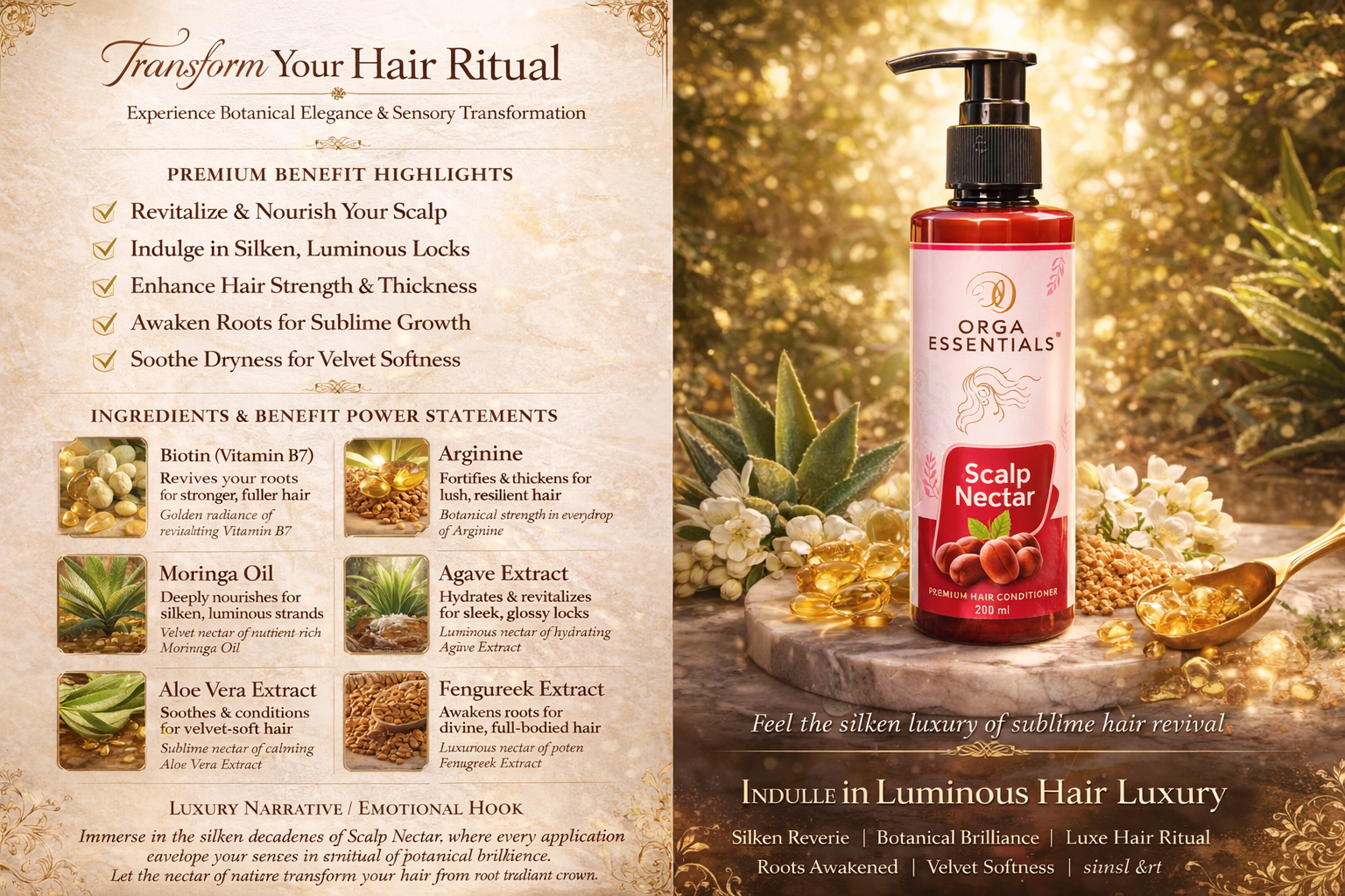 Introducing Scalp Nectar Premium Hair Conditioner β a luxurious blend of science and nature, crafted to transform your hair care ritual into a rejuvenating experience.